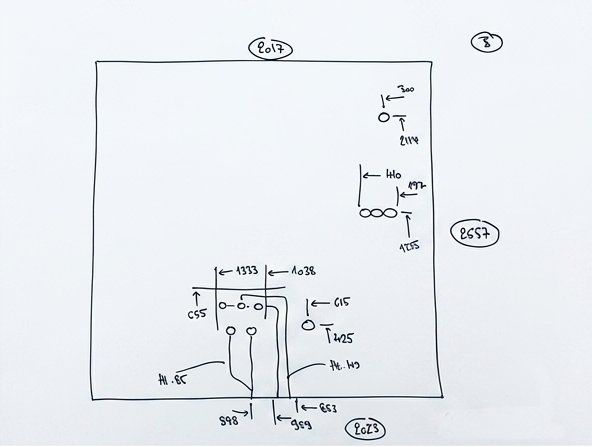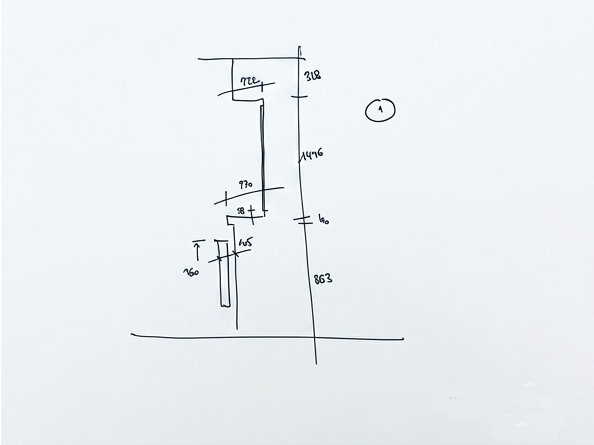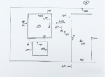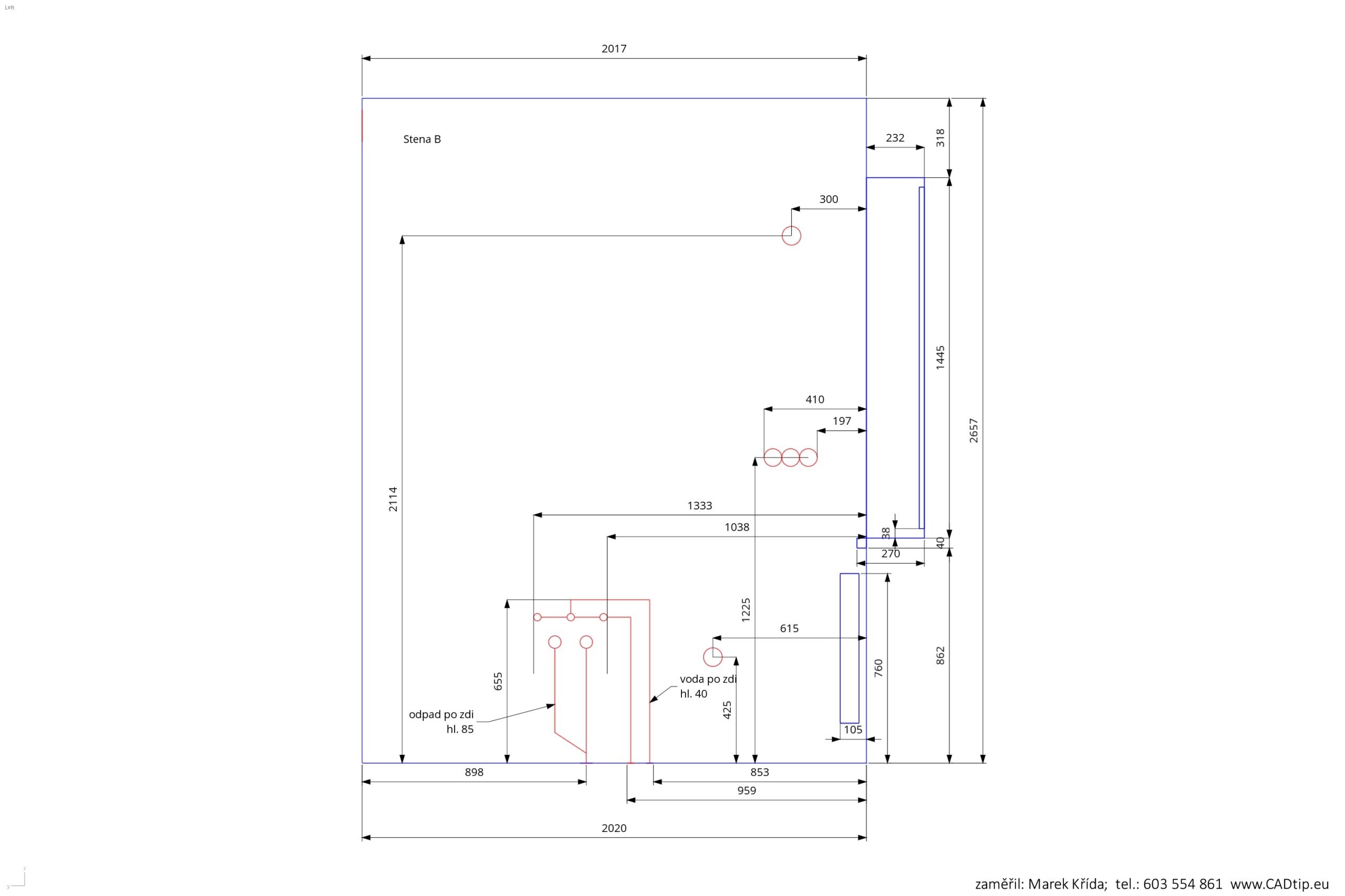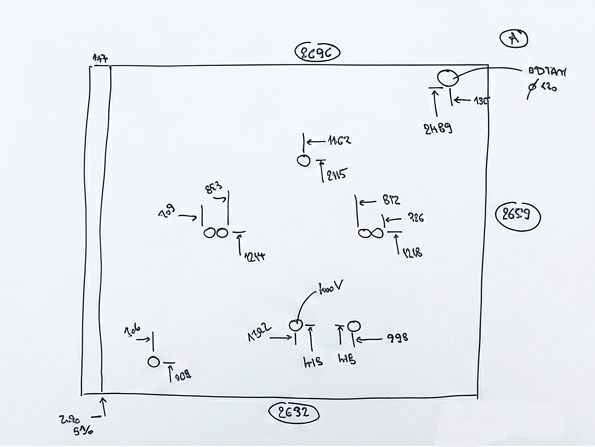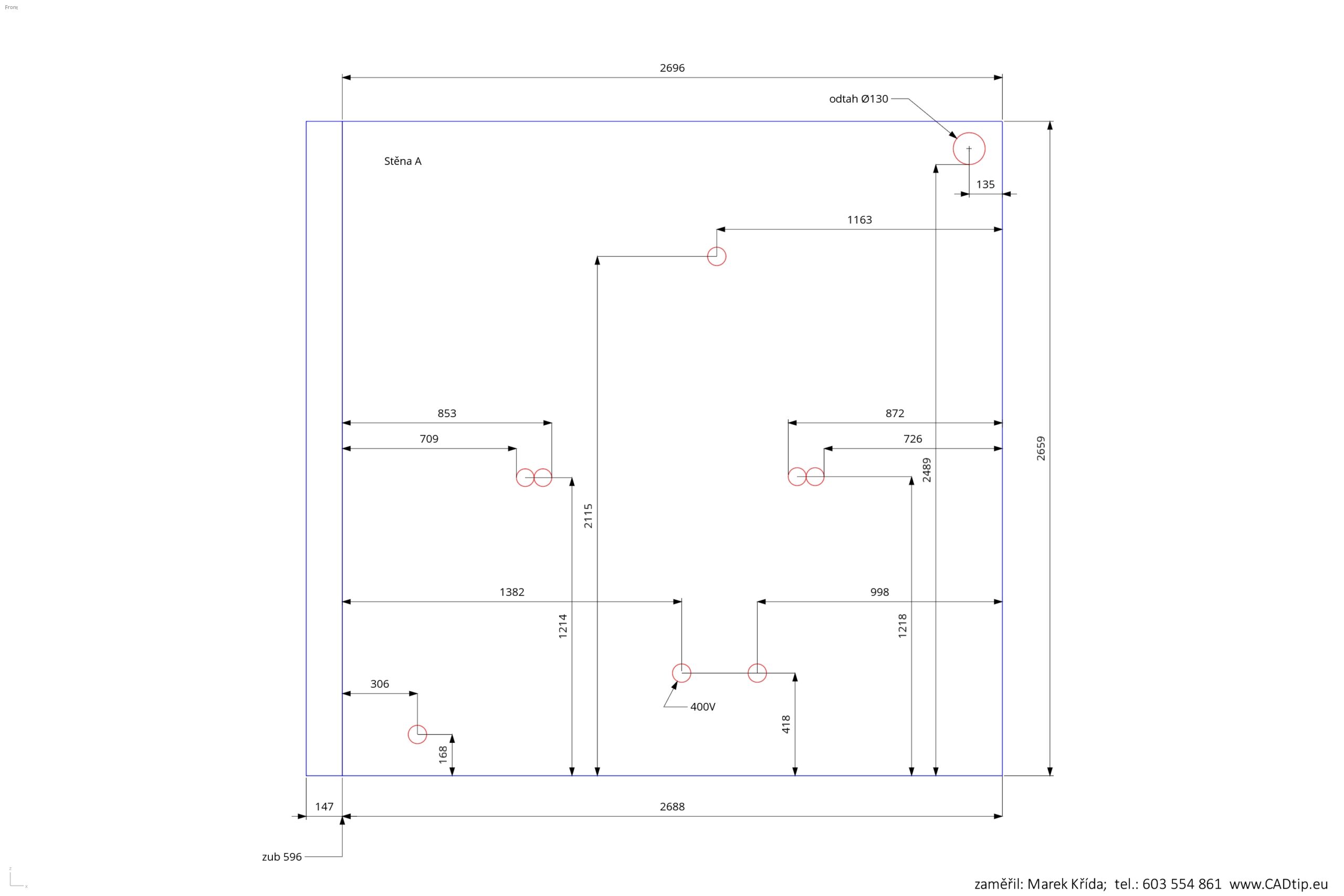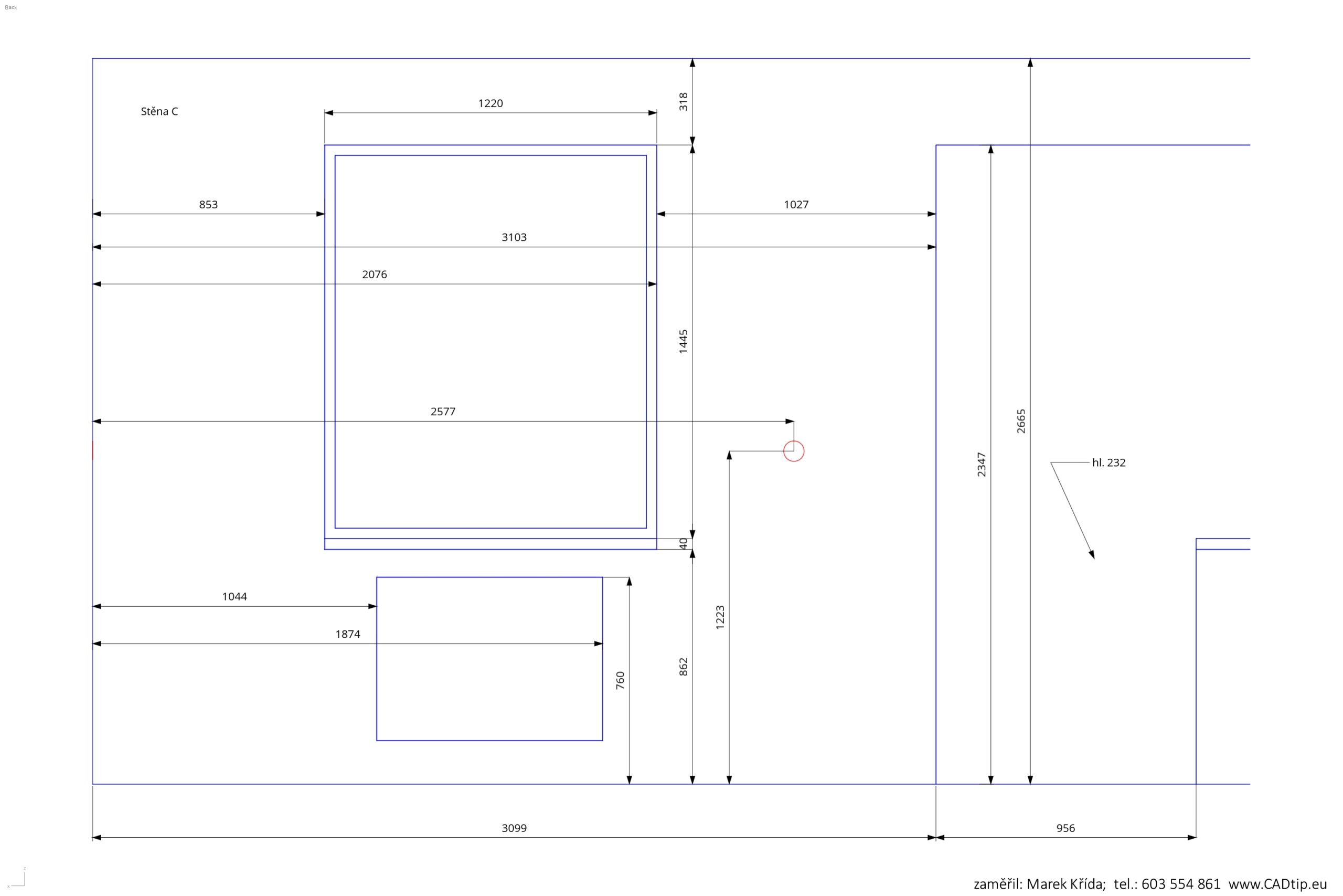 perspektiva půdorys stěna A stěna B stěna C - náčrtky od ruky ze zaměření (pro kontrolu)